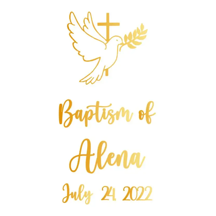 Personalized Gold Cross Dove Baby Baptism Stickers for Pillar Candle Wedding Naming Day Candles Decorations Vinyl decals